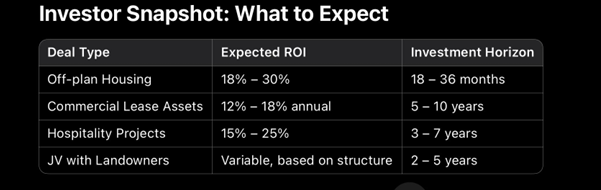 investors with high-yield, future-ready projects across residential, commercial, and tourism